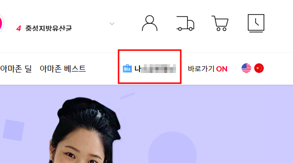 오른쪽 상단 쪽에 (Biz 사업자명) 클릭하시면 됩니다.