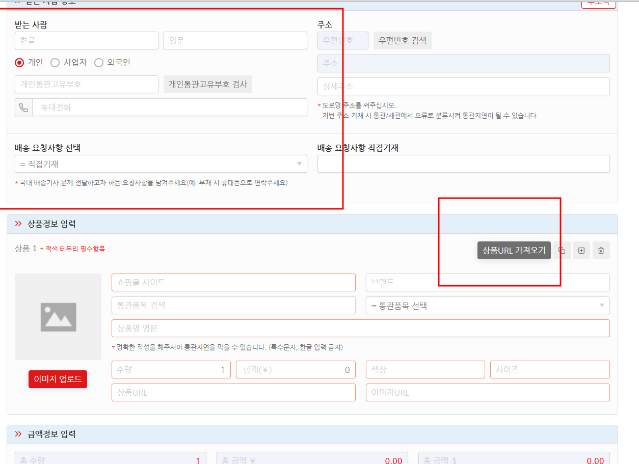 물건을 수입해와 받을 주소를 기입을 해주세요! 여기서 개인통관 고유부호는 사업자 번호 , 혹은 본인의 통관 고유부호를 기입하셔도 괜찮습니다.