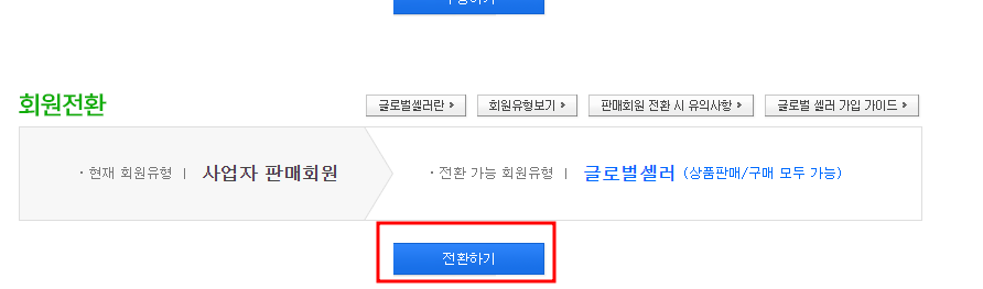 4. 하단에 글로벌셀러 전환하기 클릭