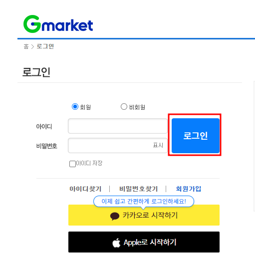 (1). 지마켓ID 입력 후 체크