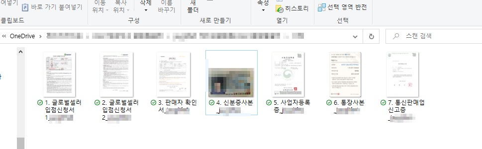 (1). 글로벌셀러 입점신청서(앞서 다운받은 워드파일, 2페이지여서 2개 파일이 필요합니다)