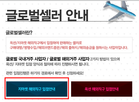 지마켓 또는 옥션은 해외구매대행 하기 위해서는 글로벌셀러로 따로 입점 신청을 해야 됩니다.