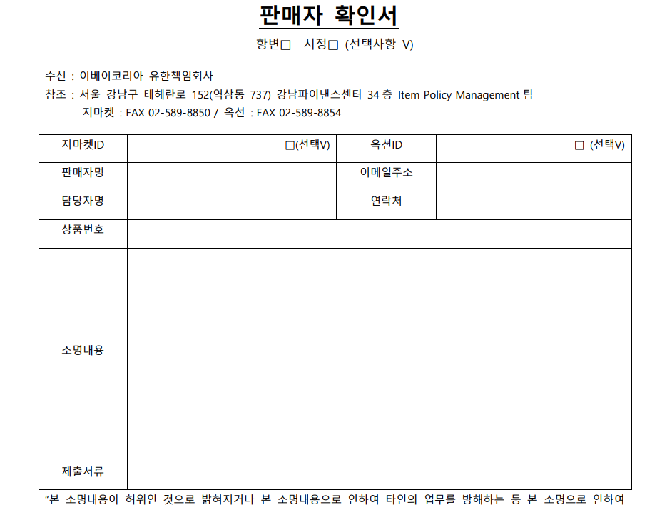 - 파일명 : 판매자 확인서_지마켓 아이디